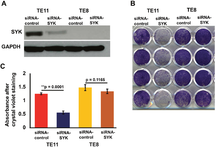 siRNA based knockdown of SYK inhibits cell proliferation and cell invasion/migration in TE11 cells