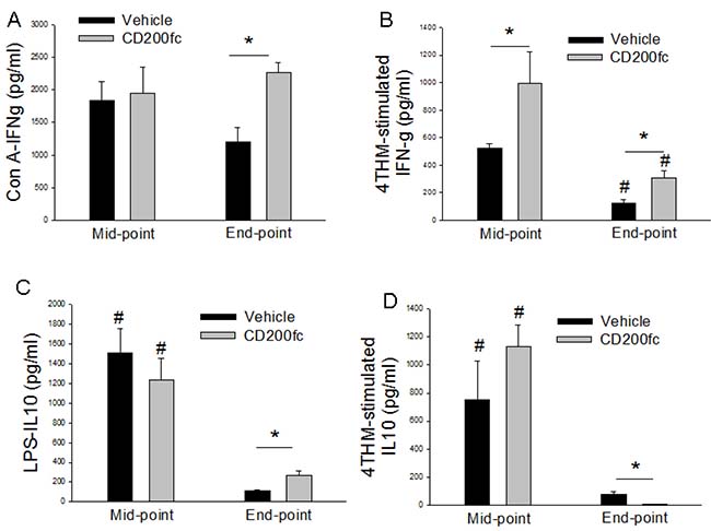 CD200fc increased IFN-γ responses and time-dependently altered IL-10 secretion