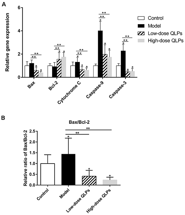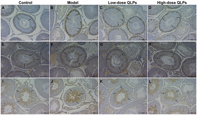 In conclusion, we demonstrated that TGs induce apoptotic cell death in the testes of oligoasthenospermic rats via inhibition of the Bax/caspase mitochondrial apoptosis pathway, and that QLPs exert cytoprotective effects by inhibiting this process. These findings suggest that QLPs are an effective alternative treatment for male infertility.