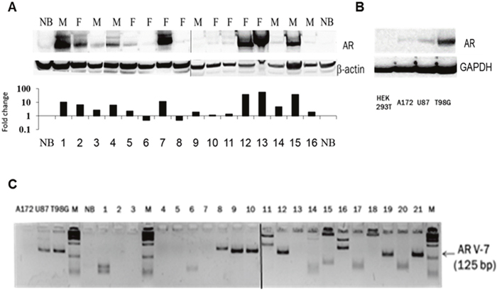 Variation in AR DNA copy number and in RNA and protein expression levels in GBM
