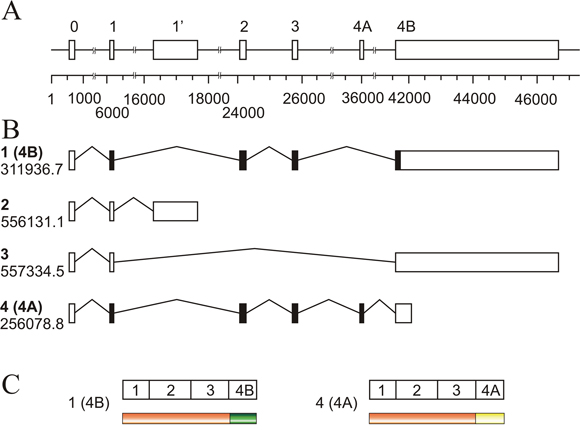 The differences in the ratio between isoforms 1 (4B) and 4 (4A) among the different cell lines found in the present paper, as well as the differences observed by many authors, put forward the question as to what splicing regulatory mechanisms decide between the inclusion or skipping of exon 4A in the mature transcript. In fact, exons 4A and 4B cannot be regarded as mutually exclusive exons at the level of mature mRNA, because the 5’ end of exon 4B is present in the mature transcript of both isoforms 1 (4B) and 4 (4A). In the latter isoform, exon 4B is not translated, because the included exon 4A contains a stop codon (TAA) in the 3’ end.