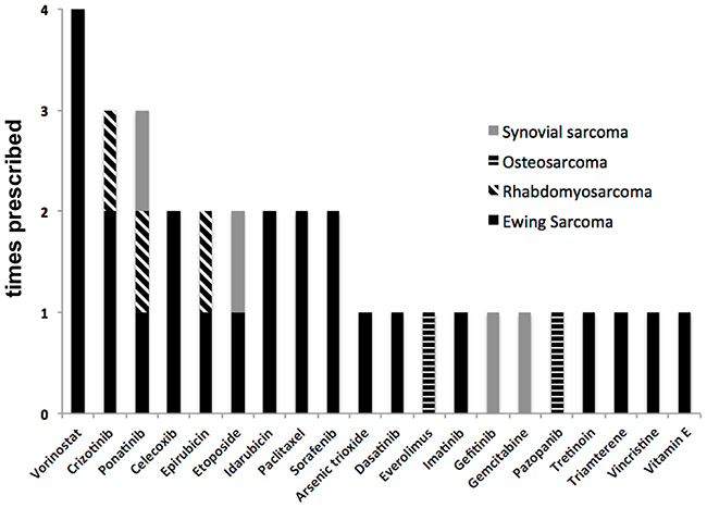 Children, adolescents and young adults with refractory relapsed (two relapses or more) or progressive (i.e. resistant) primary pediatric sarcomas were assessed for their eligibility for expression based personalized targeted therapy through the internal and/or interdisciplinary tumor. The tumor board is comprised of pediatric oncologists, radiation oncologist, pathologists, surgeons, and respective organ specialists if needed. Informed consent for treatment in the IRB approved registry study (2562/09) was obtained from eligible patients and/or their primary care provider.