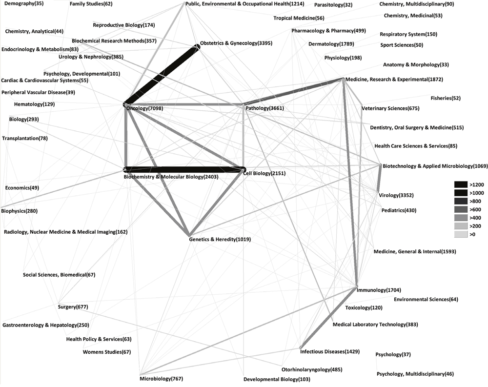 Figure 4: Combinations of subject areas in the field of HPV research.