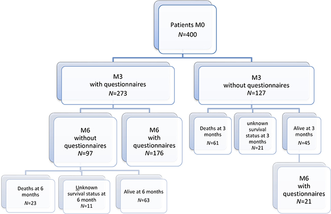 Figure 1: Patient flow chart. Flow chart depicts the distribution of completed questionnaires at inclusion, and 3- and 6-month follow-ups.