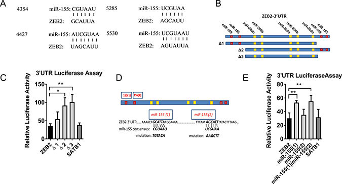 miR-155 directly down regulates ZEB2 via sites in its 3′UTR