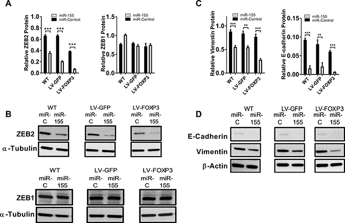 miR-155 and FOXP3-mediated reduction of ZEB2 expression alters Vimentin and E-cadherin