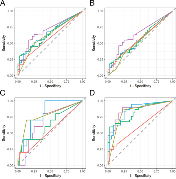 Sparse logistic regression analysis was employed to further improve the diagnostic performance in combination with urine cytology. These three genes were selected most frequently in the feature selection as well as cytology score (Supplementary Figure 3A, 3B), and a panel of the three genes in combination with urine cytology score was able to detect pT1 and higher stage bladder cancer with AUC 0.93 ± 0.04 as well as other stages and settings (Supplementary Figure 3C, 3D).