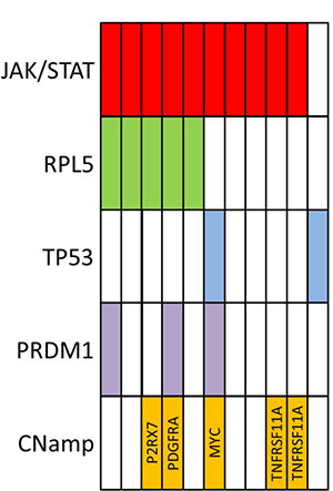 Figure 4: Summary of recurrent genomic findings from 11 cases of breast implant-associated large lymphoma (CNamp–copy number amplification).