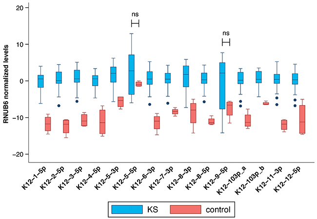The importance of sequences flanking the pre-microRNA in mature biogenesis has also been reported in both human and viral miRNA; SNPs located within pre-microRNAs have also been shown to affect the Drosha/DGCR8 processing step. In particular, this was demonstrated to occur with SNPs in KSHV miR-K12-5 [33, 34]. These results suggest that the sequence surrounding microRNA and unknown factors with which it interacts might affect its folding or protect its structural conformation against changes caused by some mutations. In our data, the effect of sequence variations was mostly noted in the pri-microRNA regions of K12-5, -8, and -9, resulting in significantly different levels of mature microRNA.