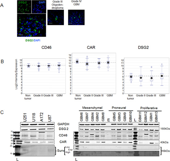 DSG2, CD46 and CAR expression in brain tumor patient samples