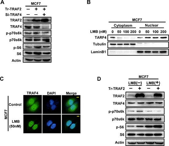 4. TRAF2 promotes p70s6k/S6 pathway partially through its regulation on cytoplasmic/nuclear distribution of TRAF4