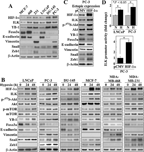 HIF-1α and ILK form a regulatory loop in facilitating hypoxia-induced HIF-1α expression and EMT in prostate and breast cancer cells