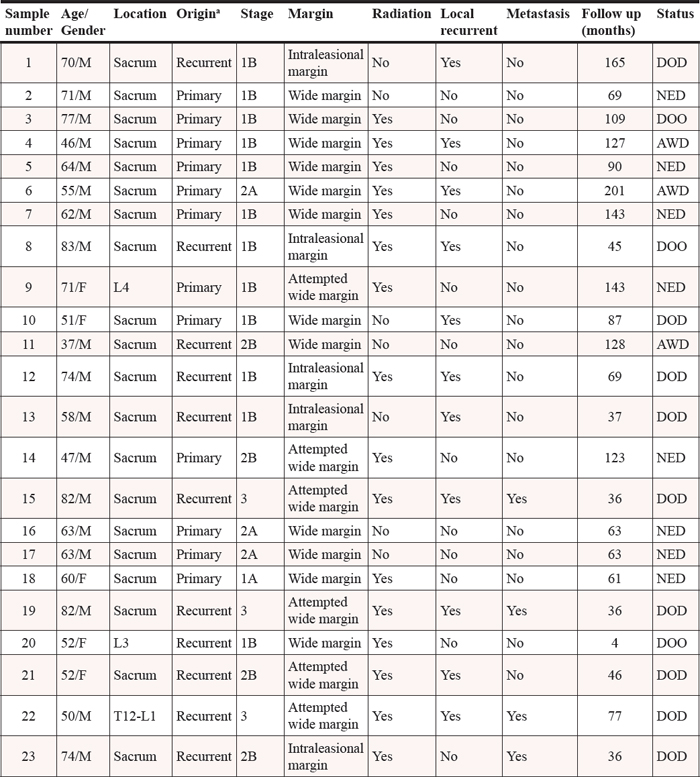 Table 4: Clinical characteristics of the chordoma patients