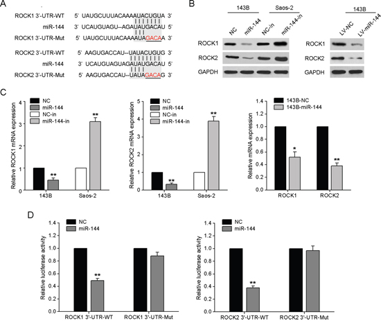 miR-144 directly targets ROCK1 and ROCK2