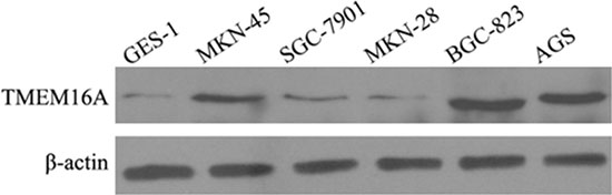 Transmembrane protein 16A (TMEM16A) also known as ANO1, DOG1 or TAOS2, was identified as a novel component of calcium activated chloride channels (CaCC) [5]. Recently, TMEM16A has been found to be upregulated in many tumor types including gastrointestinal stromal tumor, breast cancer, prostate cancer, esophyageal cancer, and head and neck squamous cell cancer (HNSCC) [6–9], and overexpression of TMEM16A has been implicated in promoting tumor proliferation [10], migration and invasion [11]. However, the biological role and clinical significance of TMEM16A in GC remain largely elusive. Furthermore, TMEM16A is located within 11q13 chromosome amplicon, which is proved to be associated with carcinogenesis of GC [12, 13]. All of these information aroused our curiosity to investigate whether TMEM16A is relevant with tumorigenesis and progression of GC.