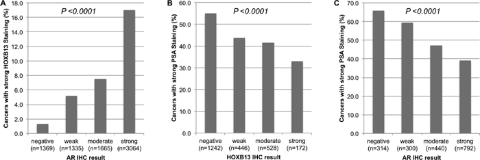 Associations between immunohistochemical expression of HOXB13, AR and PSA