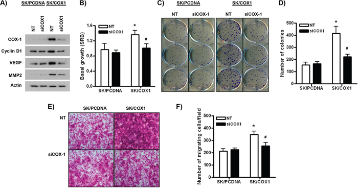 Knockdown of COX-1 gene expression inhibits multiple pro-tumorigenic pathways in vitro
