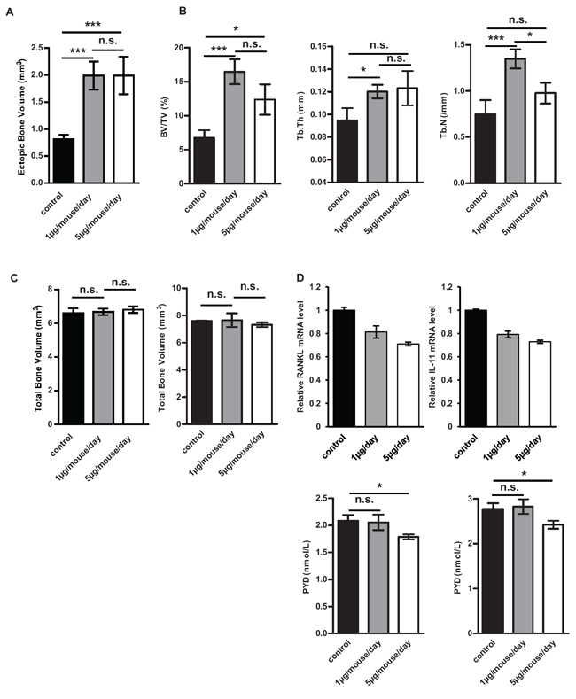 All analyses were performed using GraphPad Prism 4.0 software (GraphPad Software, La Jolla, CA, USA) or Excel. Results of in vitro experiments were analyzed with the unpaired t-test and are given as means ± SD. For in vivo experiments, results from groups treated with 1 μg/mouse/day or 5 μg/mouse/day were compared with no treated control groups using the unpaired t-test and are given as means ± SEM. Results with p < 0.05 were considered significant.