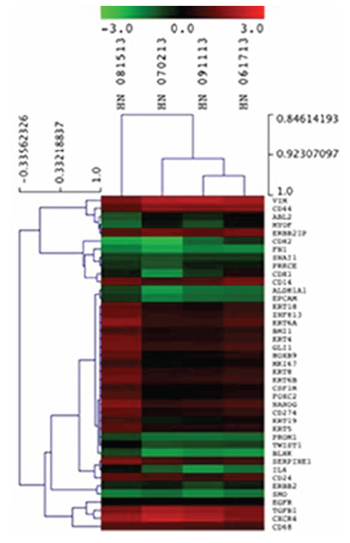 Figure 8: Unsupervised hierarchical clustering of CTCs isolated from HNSCC samples using epithelial markers, CD274, HOXB9, BLNK and ZNF813.