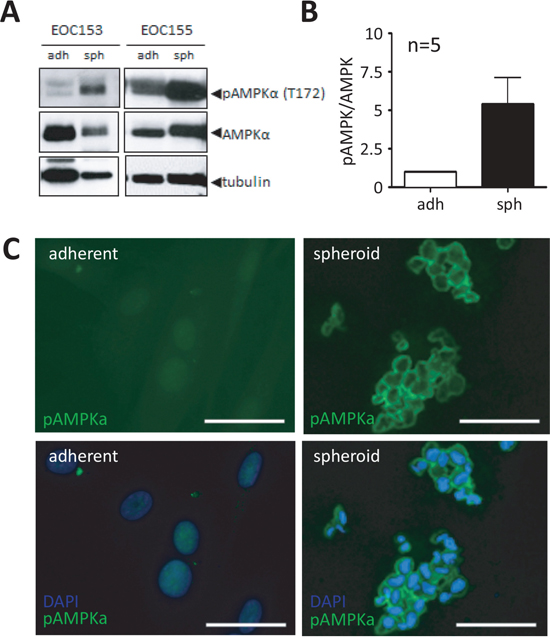 Spheroids in patient ascites exhibit enhanced AMPK activity
