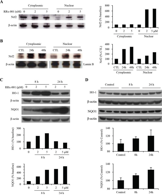 Endogenous Nrf2 expression in RRx-001-treated cells in vitro and in vivo