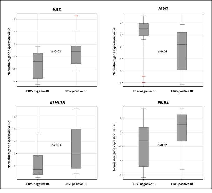 Further, to make our data more robust, the differential expression of PLCD4, METTL6, CIDEB and CRLF3 was tested and validated in an independent, previously described set of cases, including 13 EBV-positive BL and 20 EBV-negative BL cases [5] (Supplementary Figure 1).