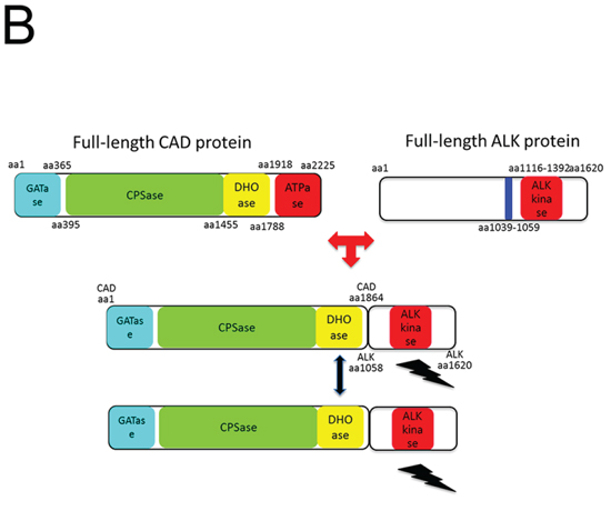 Figure 2B: Schematic of the CAD-ALK fusion protein domains and potential dimerization domains.
