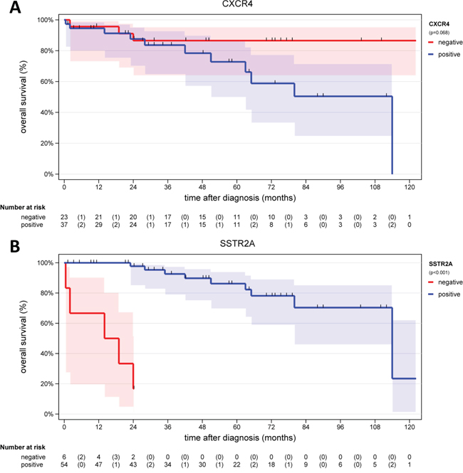 The tumor samples were embedded in paraffin blocks and sections with a thickness of 4 μm were prepared using a microtome. The sections were transferred on microscope slides and air-dried. The detection of the different SSTR subtypes and of the CXCR4 was performed using an indirect streptavidin-biotin staining method as described previously and counterstaining was done with haematoxylin [31, 52, 53].