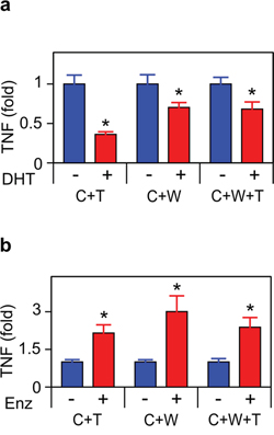 Androgen deprivation induces TNF expression