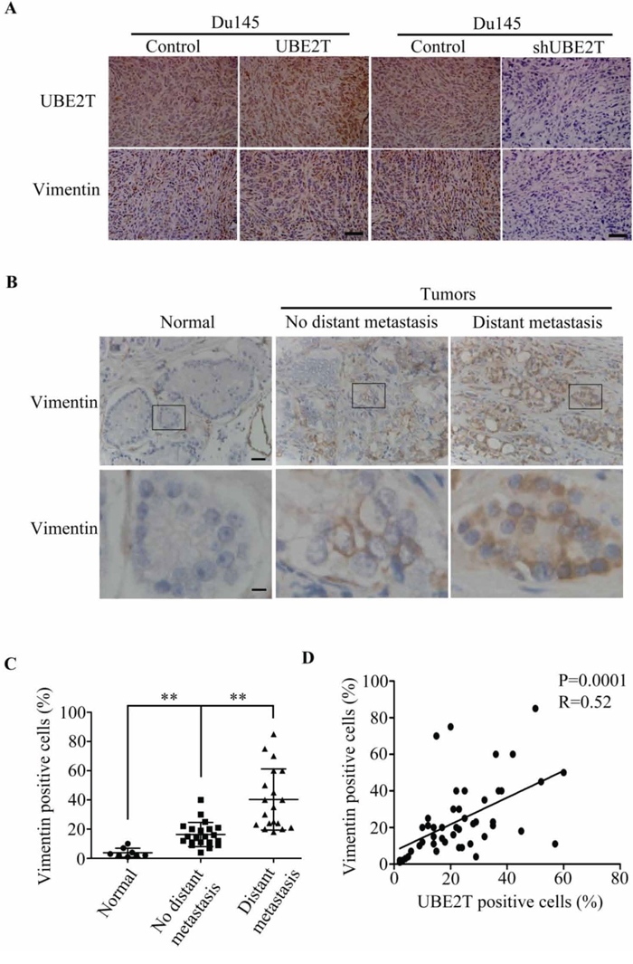 A positive correlation between UBE2T and vimentin expression in human prostate cancer