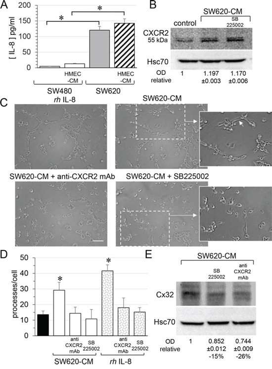 SW620 cell-secreted factors induce the endothelial Cx32 expression and tube formation via the cytokine receptor CXCR2