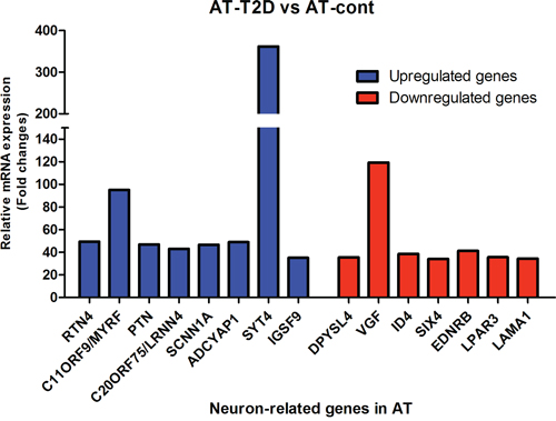 Table 2: The list of highly up-regulated and down-regulated genes with a neuronal function detected in human control adipose tissue (AT) and AT-T2D using mRNA expression