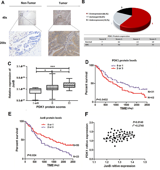 In summary, we determined that PDK1 is frequently upregulated in GBC and is responsible, at least in part, for GBC invasion and metastasis. JunB activity, which is increased following PDK1 upregulation, promotes EMT and likely plays a role in the observed effects of PDK1 overexpression. Based on our findings that PDK1 expression is closely related to the prognosis of GBC, additional studies of PDK1 and JunB as cancer biomarkers are warranted.