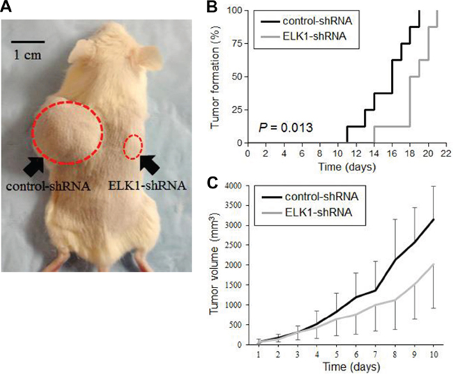 Anti-tumor activity of ELK1 silencing in vivo