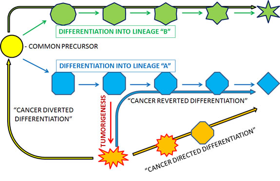 So why aren’t there more examples of differentiation therapy? For hematopoietic malignancies it has been argued that APML represents an isolated example of a “simple karyotype” disease that is both addicted to the characteristic fusion gene for tumorigenicity and has minimal other genetic abnormalities. Thus, the reversal of one pathway is sufficient to reverse the tumorigenicity of APML and place it back on the road to normal differentiation, something that is unlikely to be true for other hematopoietic malignancies. For solid tumors, the application of differentiation therapy has been further compounded by the absence of developmental models of cancer progression that correlate cancer subtypes to stages of normal development. Models such as those proposed by Pierce and colleagues have been historically minimized in favor of the more common notions of solid tumorigenesis which hypothesize that mutations occurring in “normal” tissue results in gradual dedifferentiation to cancer cells harboring features of normal tissue reflecting varying degrees of differentiation – a feature invariably linked to cancer aggressiveness [15]. Therefore, even the consideration of differentiation-based therapy in solid tumors has been hampered by the lack of developmental-based classifications of solid tumors.