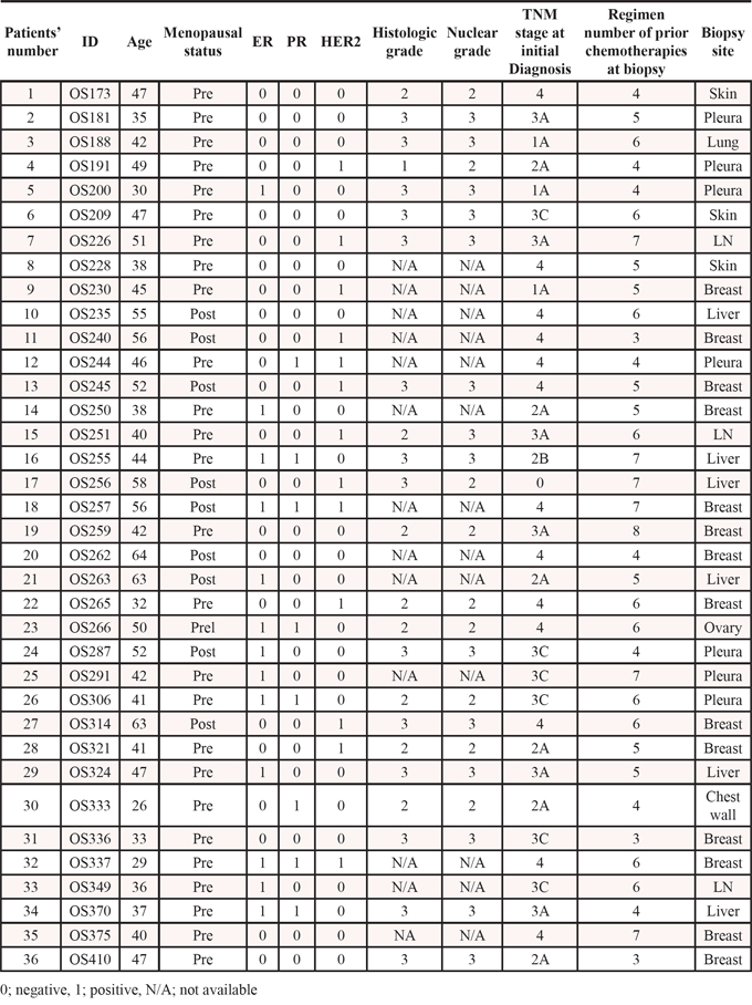 Table 1: Clinicopathologic features of 36 refractory MBC patients