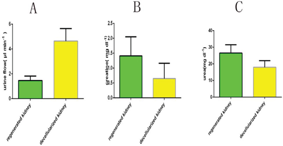 Figure 10: Functional test after transplantation of regenerated kidney. Data are shown as the mean ± s.d (in three groups of data, p < 0.01). Statistical significance (p < 0.05) was determined by Student’s t test.