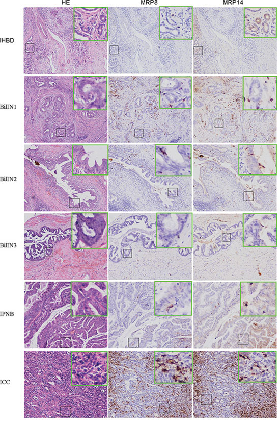 MRP8 and MRP14 Expression-level Profiles of IHBD, BilIN1, BilIN2, BilIN3, IPNB, and ICC