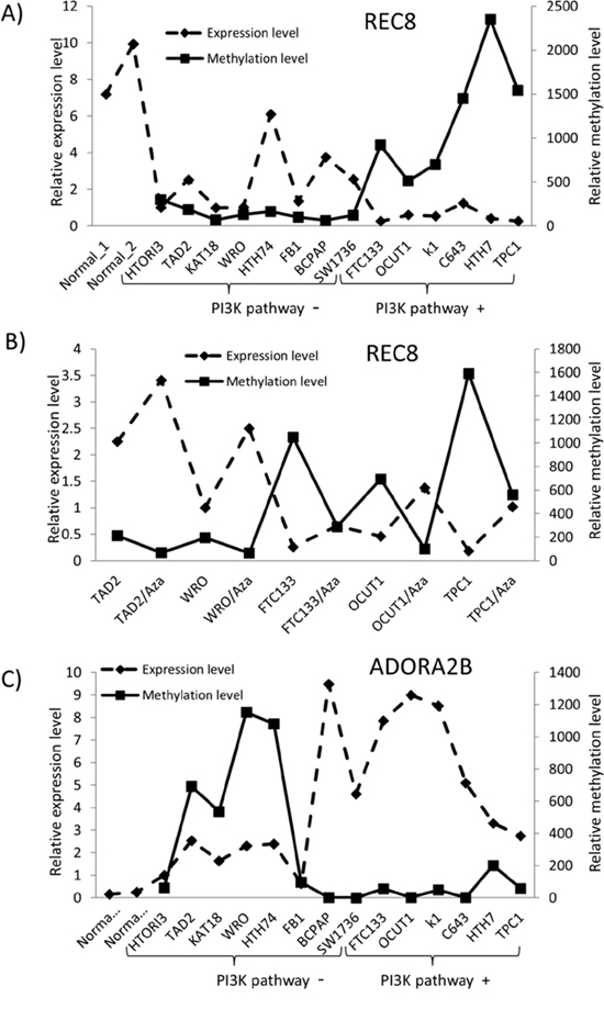Relationship of the methylation/expression status of REC8 and ADORA2B with genetic alterations of the PI3K pathway in thyroid cancer cell lines