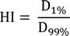 5. Homogeneity index (HI): A ratio used to evaluate the homogeneity of the PTV [29]. A lower HI value indicates better homogeneity.