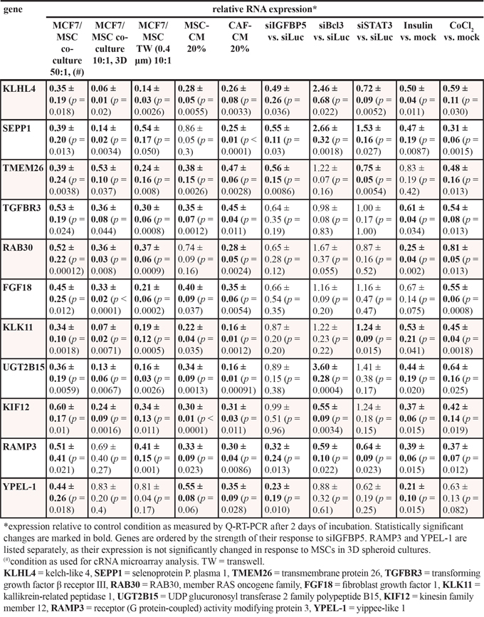 Table 1: Relative expression of selected MSC/CAF-responsive genes in MCF-7 cells under different conditions