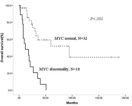 Figure 2: Patients with MYC abnormality have adverse overall survival.