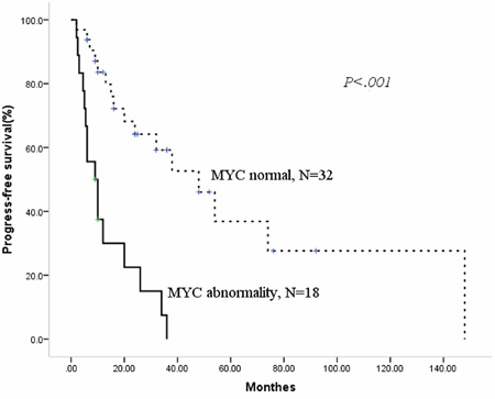 Figure 1: Patients with MYC abnormality have adverse progress-free survival.