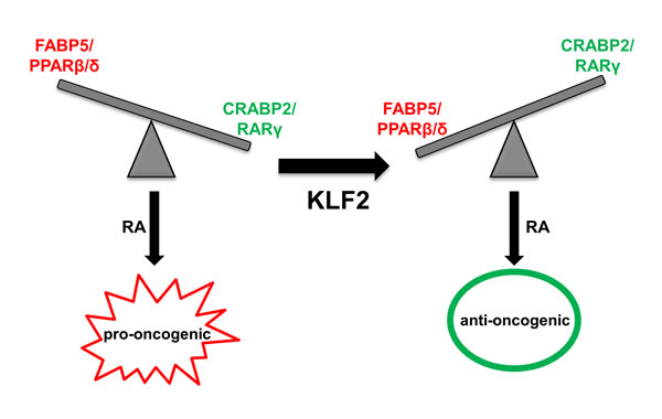 KLF2 converts RA from a pro-oncogenic to an anti-oncogenic agent