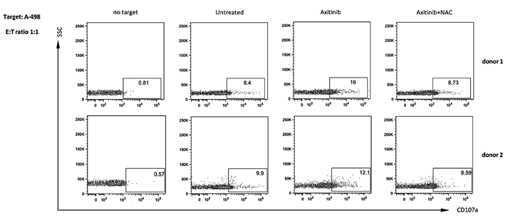 Enhanced NK cell degranulation upon interaction with axitinib-treated A-498 RCC cells