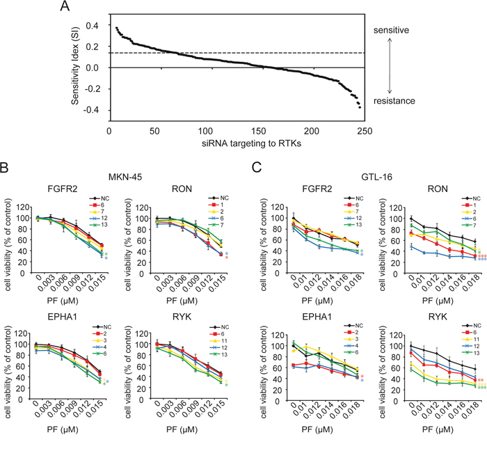 siRNA screening identifies RTKs influencing the sensitivity of GC cells to PF