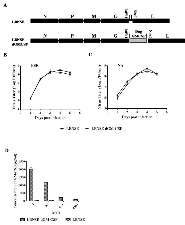 Construction and characterization of recombinant attenuated RABV expressing dog GM-CSF (LBNSE-dGM-CSF)