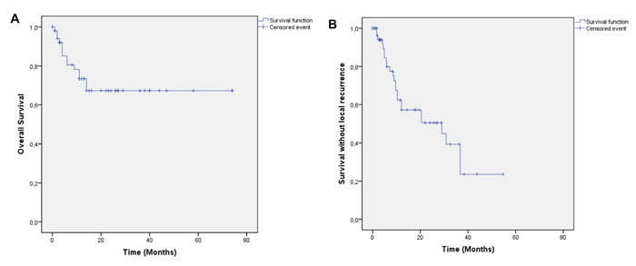 Figure 1 A: Overall Survival. B: Survival without local recurrence