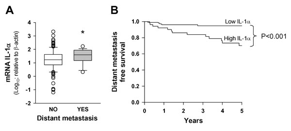 IL-1α transcript levels are associated with the presence of distant metastasis