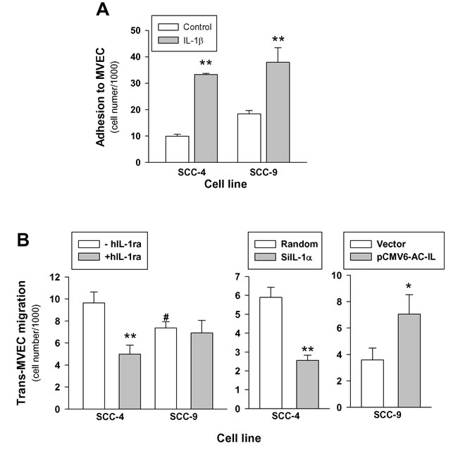 Expression of IL-1α increases trans-endothelial cell migration but not affects adhesion of HNSCC cells lines to MVEC